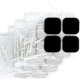 The TENS device comes complete with the device, two (2) pair of lead wires, one (1) four (4) pack of reusable premium electrodes, one (1) 9-volt battery, a quick start guide instruction manual, and a hard carry case.